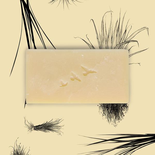 Ce savon luxueux au vétiver est fait d'ingrédients naturels hydratants tels que le beurre de karité, le beurre de cacao, l'huile d'olive et l'huile de coco. La fragrance a été élaborée par la parfumerie québécoise Monsillage.