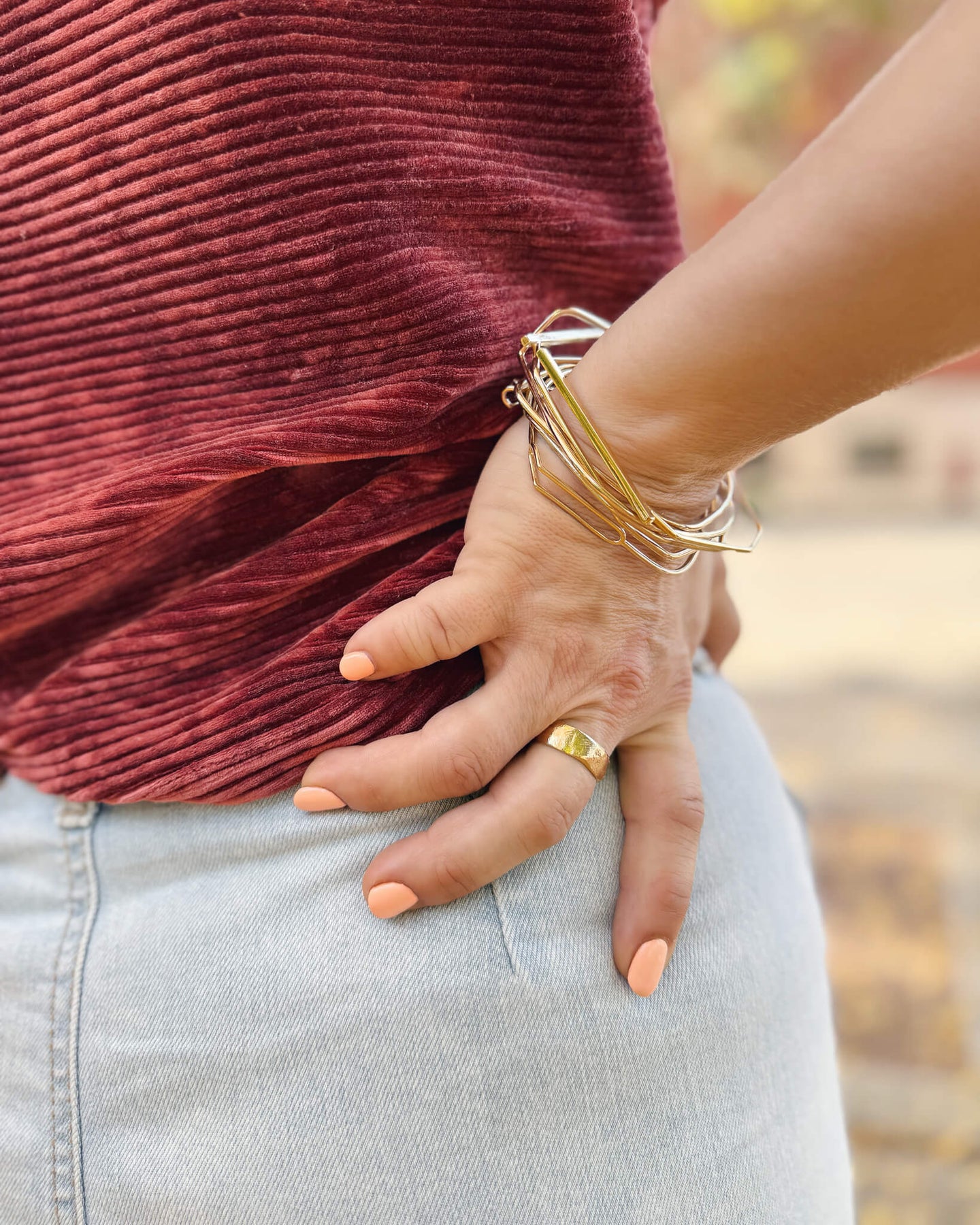 Ce bracelet est le complément idéal pour les boucles d'oreilles ovales réversibles ou le bracelet bangle irrégulier. Combinez-les pour obtenir un ensemble de bijoux harmonieux.