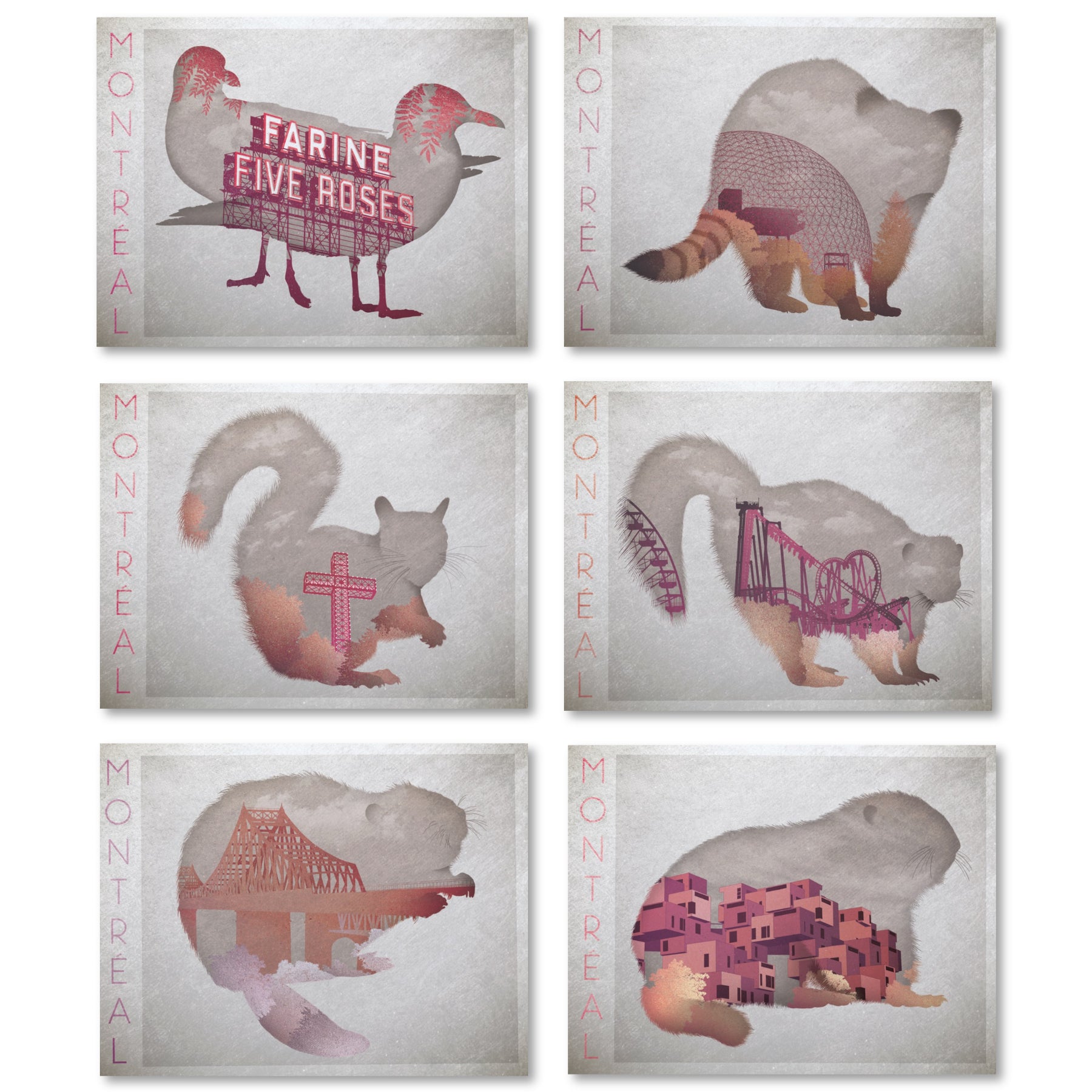 Ensemble de 6 cartes postales, Faune de Montréal