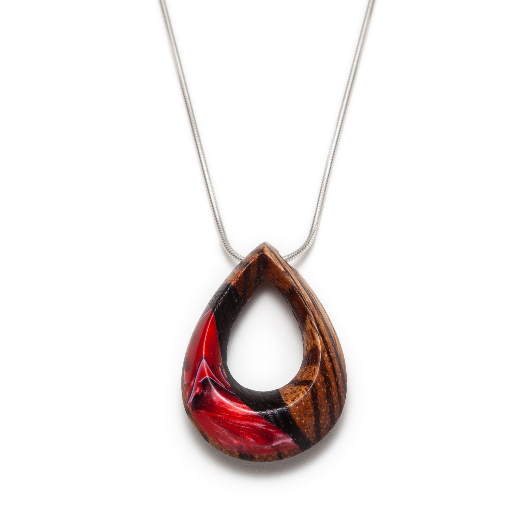 Sky blue or bright red? Why choose? Whatever your outfit or current mood, this reversible wood and acrylic pendant necklace, created by Montreal jeweler Richard Hajj, will fit you perfectly!