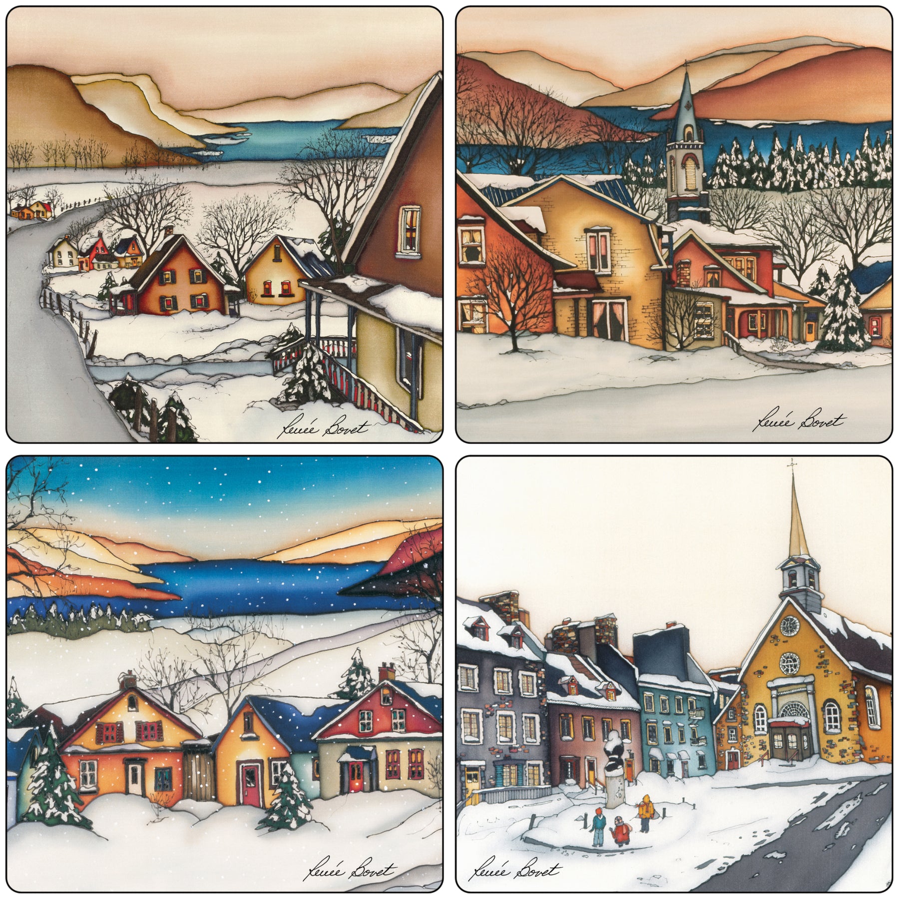 Cet ensemble 4 sous-verres en liège vous fera rêver aux beaux hivers québécois, en attendant votre prochain voyage, une bonne boisson à la main!